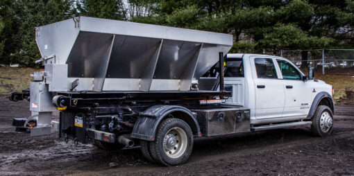 The Switch-N-Go® Salt Spreader Body is your one stop solution for salt application. This unique stainless V-Box spreader and subframe design allows for superior weight distribution and hauling capacity, compared to other designs. This option weighs less than using a flatbed or dump body for a mounting platform, has better visibility around the unit, and