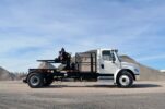 Designed as a safer way to transport front and rear load containers, Galbreath’s loaded container handlers (LCH) are set up to sit level during transport to minimize trash spillage. The container and the center of gravity are located in front of the rear axle to maximize weight distribution, allowing highway speed transport of safely loaded containers. The Galbreath LCH can accommodate up to 8,000 lbs. and front load containers up to 10 yards or rear load containers up to 6 yards in size. Legal overhang at the rear of the vehicle when hauling loaded containers prevents the need for an ICC bumper.