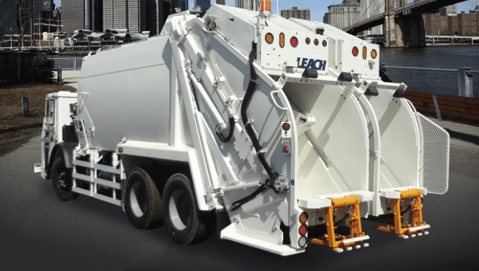 The Leach Split Rear Loader by Labrie does dual-collection, with zero limitation on pick-up productivity. The innovative design means the Split Rear Loader can be used for pickup of refuse, recyclables, and with the leachate tank, organic collection. With the heavy duty controls and other unique features including tailgate auto-latch system, chromium slide shoes, packer controls curbside and dual tailgates, the Leach Spilt Rear loader will make curbside pickup as efficient as possible.