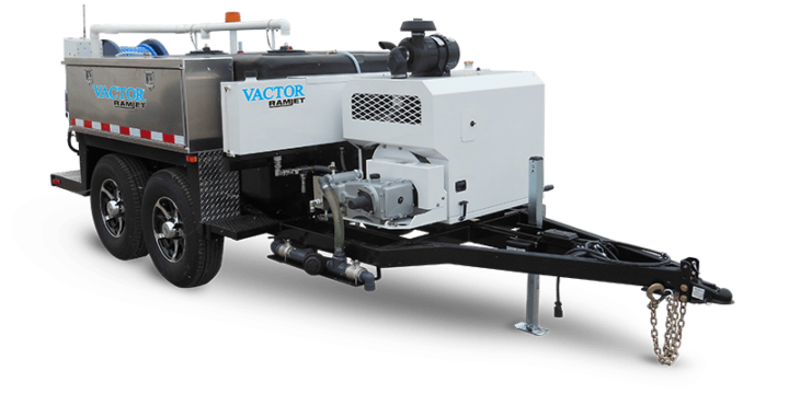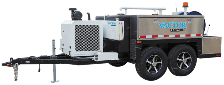 If you’re looking for a cost-effective, yet powerful, sewer maintenance tool, the Vactor Ramjet trailer and skid-mounted series offers you more than just performance and convenience. With more configuration choices in engines and pumps, plus water tanks up to 1,000 gallons, and a wide range of productivity-building options, the Ramjet series is simply your best choice. To effectively clean sewers, drains, pipelines and culverts, the Ramjet offers you: